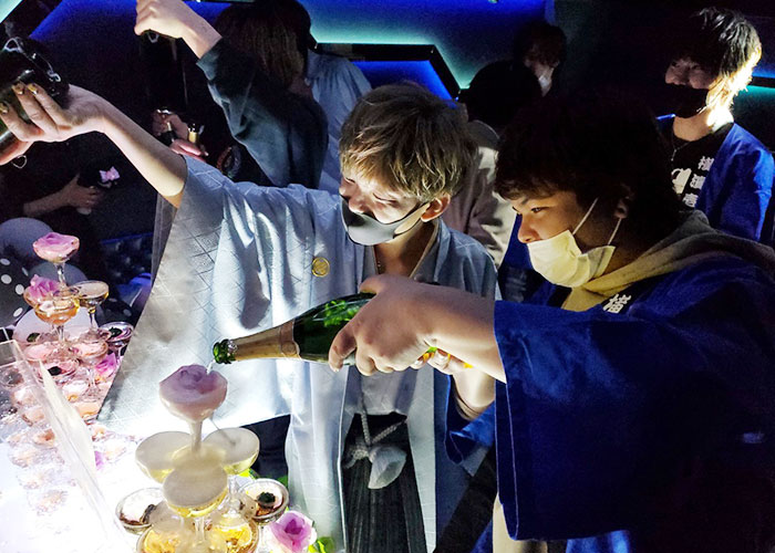 シャンパンタワーが完成して朔馬幹部補佐から一言メッセージが♪