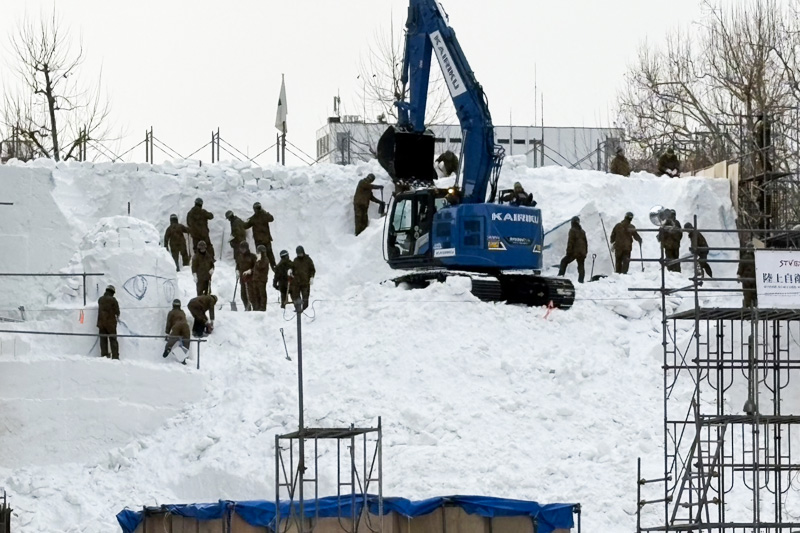 今年で75回目の開催を迎え現在、大通り公園内では開催に向けて着々と自衛隊員による雪像制作が始まっております。
