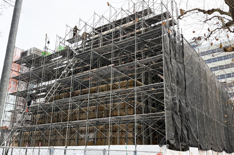 ※裏側:建築現場さながらの足場