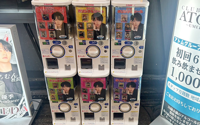 キャストさんたちがオリジナルシールになったガチャガチャが『ATOM -UMEDA-』前に登場!