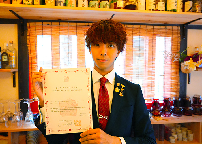 A.『Smappa!Group』に入ってすぐの頃、グループ内でソムリエ養成講座が開講されていて、「受けてみたい」と思ったのが大きなきっかけです。また、『SMAPPA!HANS AXEL VON FERSEN』はワインが楽しめるお店なので、先輩のお席で高級なワインをいただくこともありましたが、当時は「美味しい」と感じても、それが“どう美味しいのか”をうまく説明できない自分がいて……。そこから、「もっと深く知って、理解したうえで楽しめるようになりたい」と思ったんです。