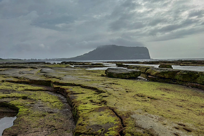 今回はロケ地が多い為、コンスタントにシーンを変えての撮影。ここは城山日出峰。海底噴火によってできた巨大岩山で、済州島を代表する景勝地の1つ。