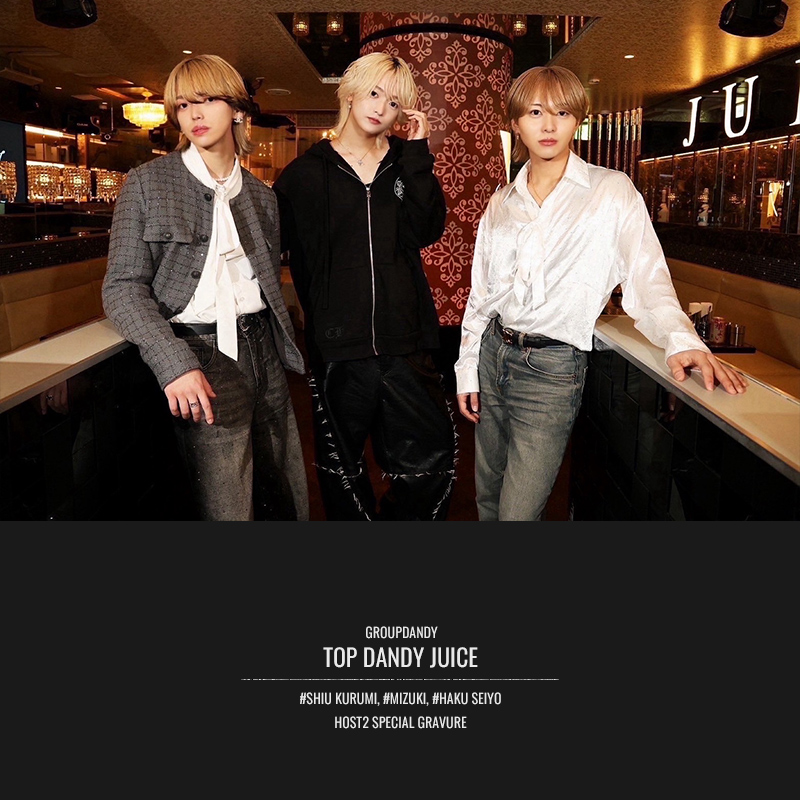 歌舞伎町『トップダンディージュース』より、胡桃しう×美月×青燿羽玖さんによるスペシャルグラビアをどうぞご覧ください♪